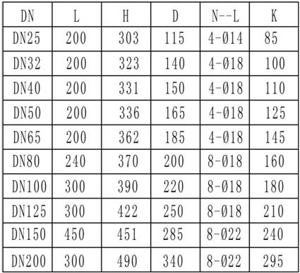 流量計(jì)采用法蘭連接方式,法蘭尺寸執(zhí)行化工部GB/T 20592-2009標(biāo)準(zhǔn),流量計(jì)外形見(jiàn)組圖4,尺寸列于表2中(此表為PN1.6MPa時(shí)的法蘭尺寸)。